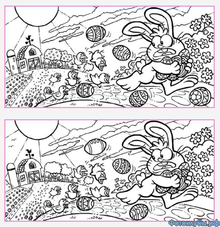 Это СЛОЖНАЯ загадка. Заяц " украл" ещё уйму отличий, по мнению автора загадки,чуть меньше 30.