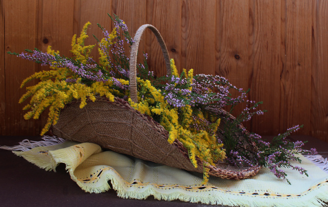 букет с золотарником и вереском
